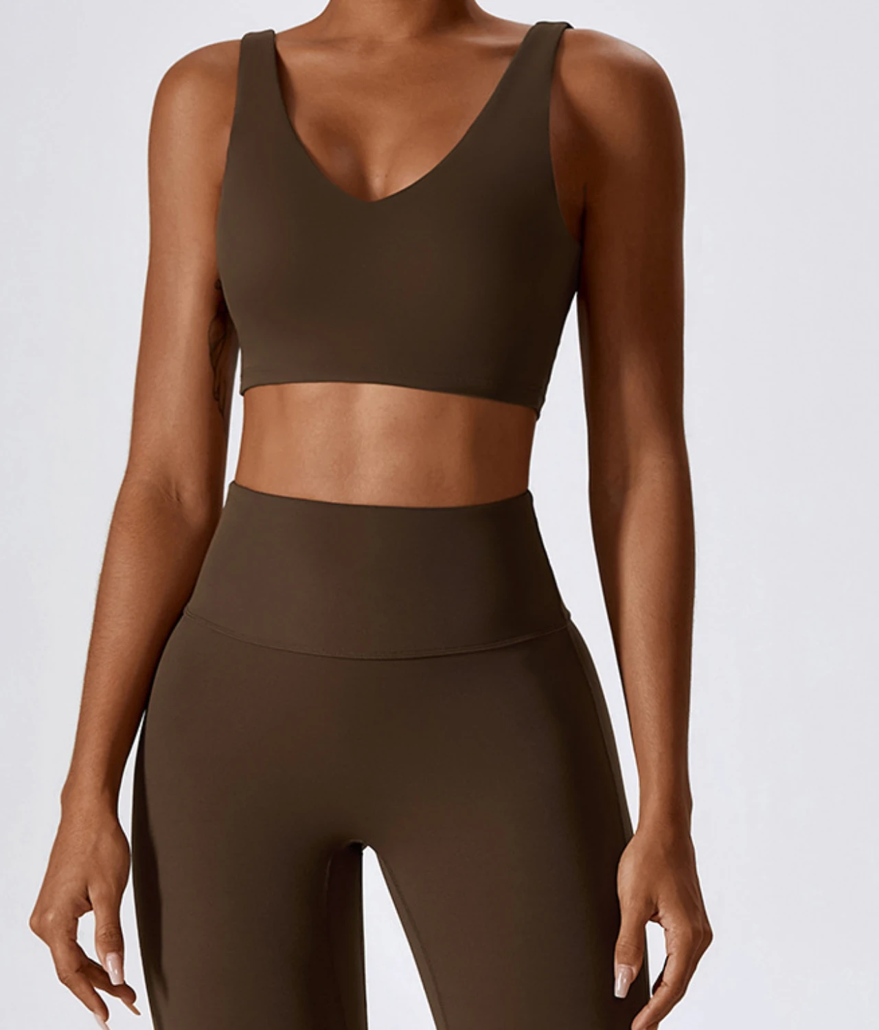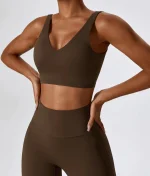 Leila top na bretele je stilski spoj elegancije i funkcionalnosti, dostupan u modernim zemljanim tonovima koji su idealni za kombinovanje. Prednji deo karakteriše V-izrez, koji suptilno naglašava dekolte, dok debele bretele pružaju dodatnu stabilnost i podršku, posebno tokom intenzivnih aktivnosti. Zadnji deo je jednostavan i čvrst, što doprinosi vrhunskoj podršci i komforu, bez kompromisa u estetici. Neprovidan materijal osigurava osećaj sigurnosti, dok Dri-fit tehnologija omogućava koži da ostane suva i sveža, čak i pri najzahtjevnijim treninzima. Top dolazi sa jastučićima koji se mogu po potrebi izvaditi i idealan je za kombinovanje sa Leila zvoncarama, pružajući skladan i moderan izgled koji će vas izdvojiti iz mase.