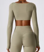 Leila top na dugi rukav odiše sofisticiranošću i stilom, savršen za moderne žene koje žele praktičnost i eleganciju u svakodnevnom outfitu. Izrađen je od materijala visokog kvaliteta, što osigurava sigurnost tokom svakog treninga ili aktivnosti. Njegova Dri-fit tkanina omogućava koži da ostane suva, a čvrst pojas garantuje da topić ostaje na mestu tokom najrazličitijih pokreta. Prednji deo je elegantno sečen, pružajući lep i prirodan oblik dekoltea, dok materijal pruža osećaj udobnosti i čvrstoće. Neutralni zemljani tonovi u kojima dolazi, a koji su trenutno jako popularni, daju topu moderan i sofisticiran izgled, pa ga je lako uklopiti u različite modne kombinacije. Posebno se preporučuje uz helanke zvoncare iz iste kolekcije, ali je dovoljno univerzalan da se može nositi uz bilo koji donji deo. Ovaj model predstavlja spoj funkcionalnosti i estetike, namenjen ženama koje žele vrhunski dizajn bez kompromisa po pitanju udobnosti.