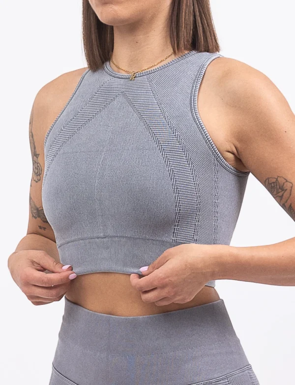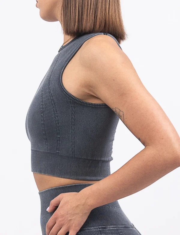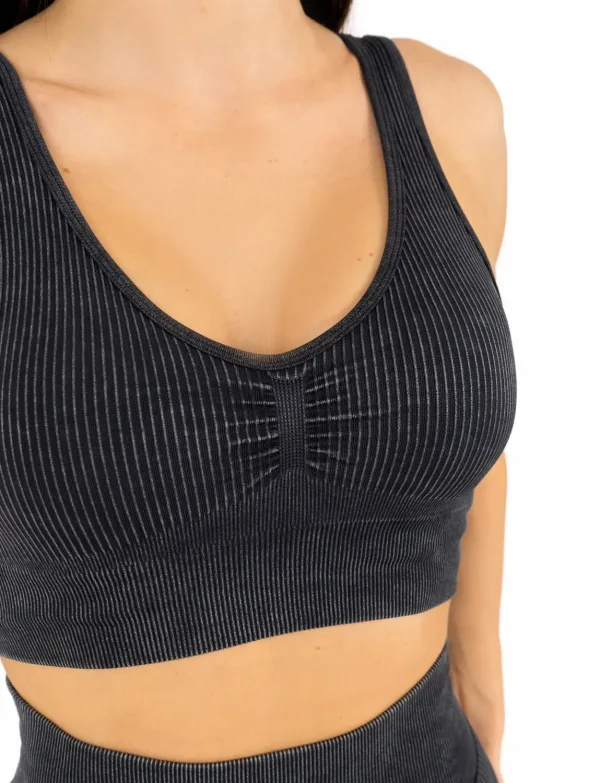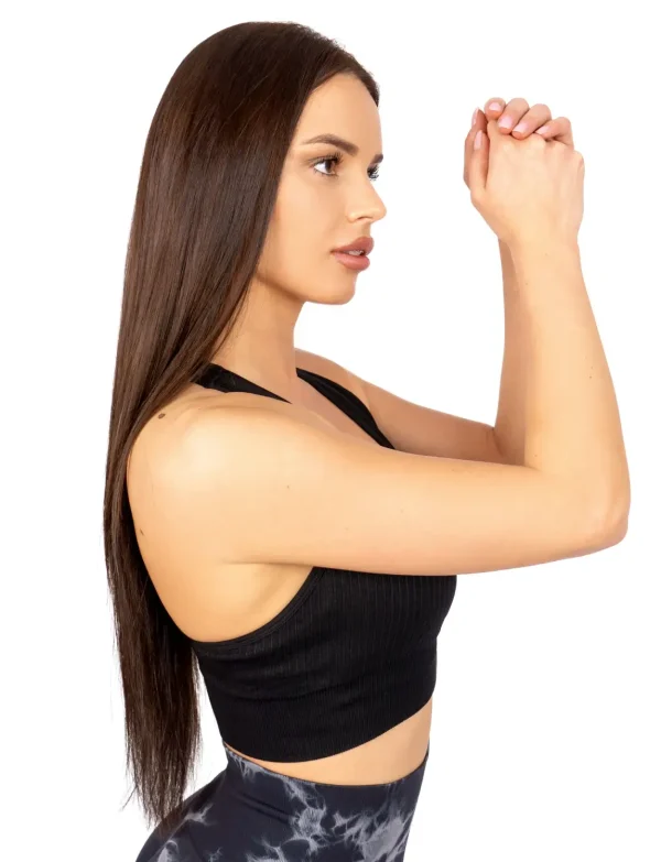 - Bešavno tkanje i oprema bez žice garantuju sigurnost i nepomičnost tokom vežbanja i tako utiču na prevenciju prevremenog opuštanja grudi. Zahvaljujući autentičnom kroju, možeš da zaboraviš na iznenadne probleme izbijanja žice ili osećaj “kao da ti koža kipi sa strane”, jer se naši topovi u potpunosti prilagođavaju vašoj figuri i prate vašu liniju tela